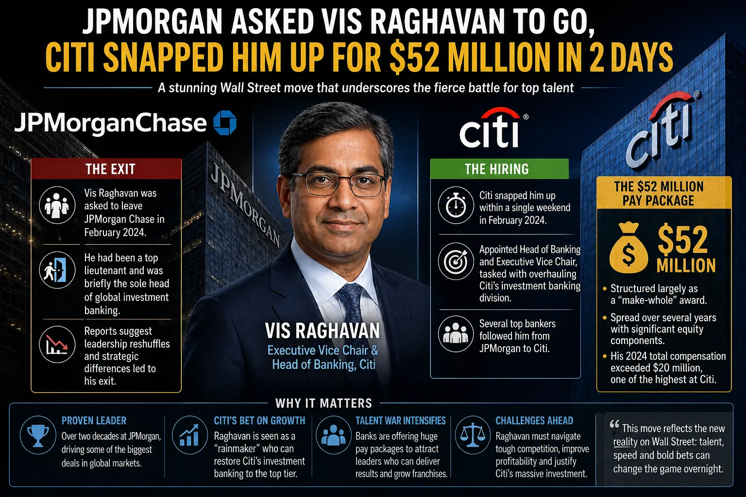 The rapid transition of Vis Raghavan from JPMorgan to Citi, sealed within a single weekend and backed by a $52 million package, is more than just a headline-grabbing event. It is a reflection of the evolving dynamics of global finance, where talent, strategy, and timing intersect.
